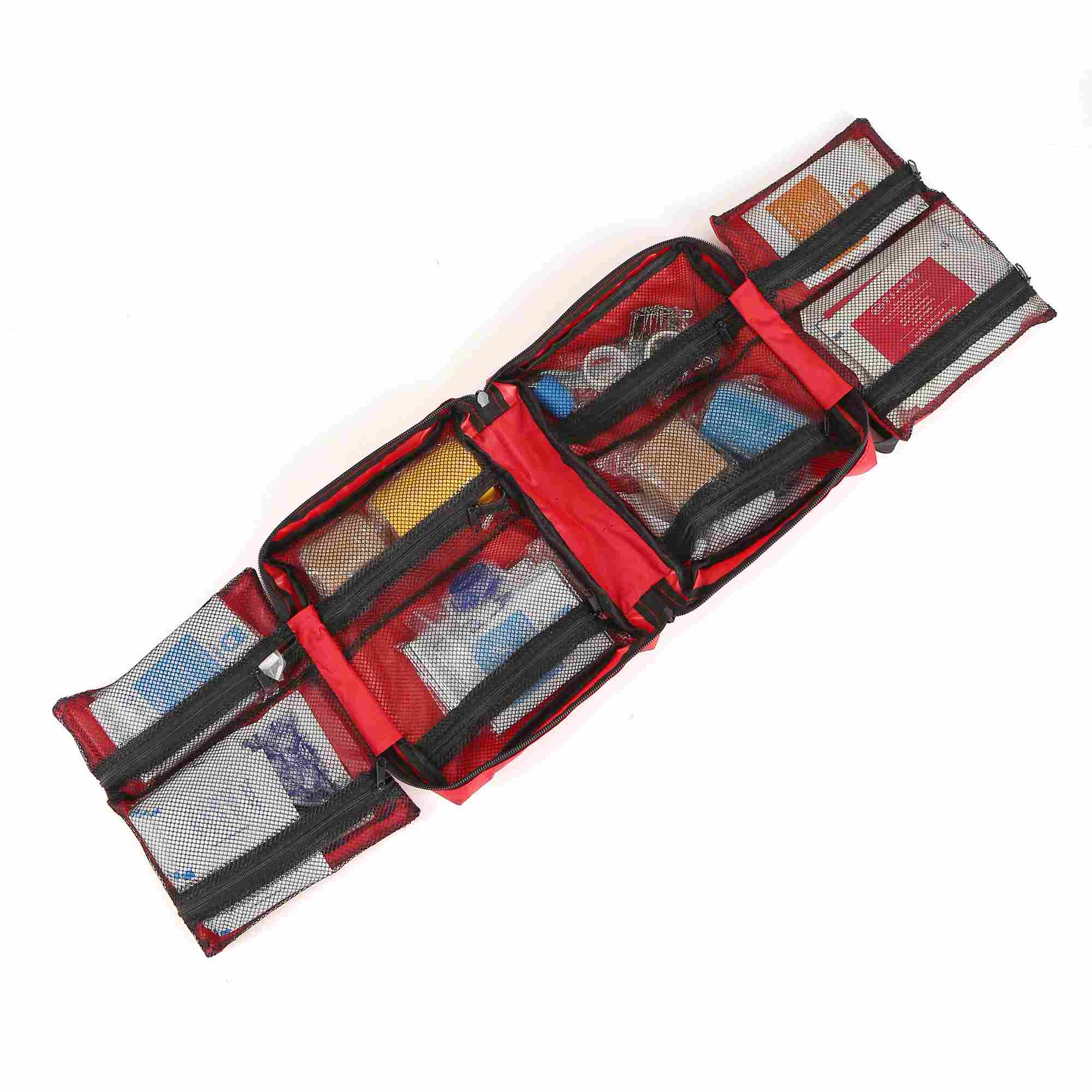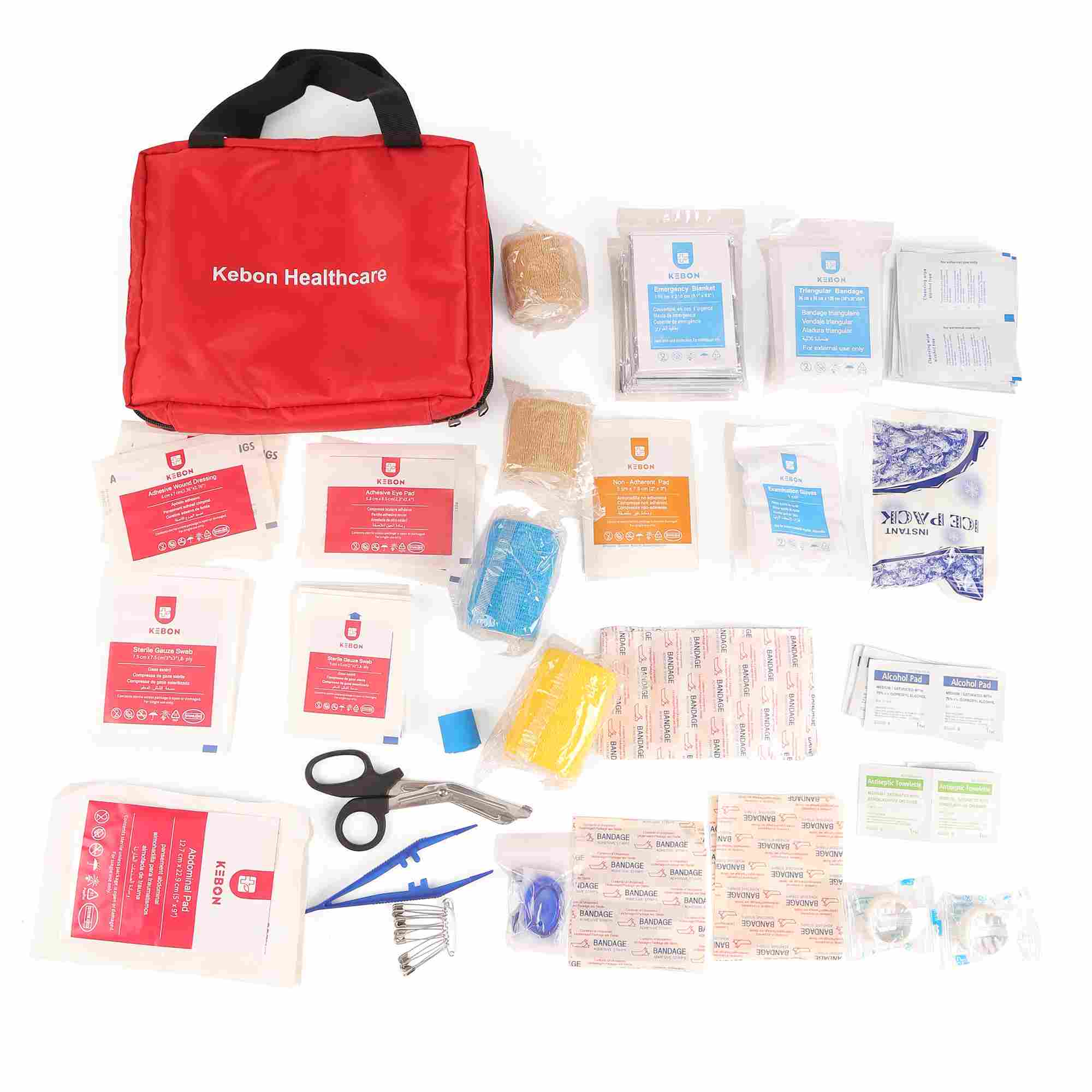 KategoriaZawarte elementySterylne opatrunkiGazy, sterylne opatrunki, podkładki chłonneBandaże i okładyBandaże elastyczne, bandaże trójkątne, taśma samoprzylepnaOpatrywanie ranMieszane bandaże samoprzylepne, waciki nasączone alkoholem, chusteczki czyszcząceNarzędzia ratunkoweNożyczki, pęsety, agrafki, rękawiczki jednorazoweInne niezbędneOkłady z lodu, taśma medyczna, plastry na rany