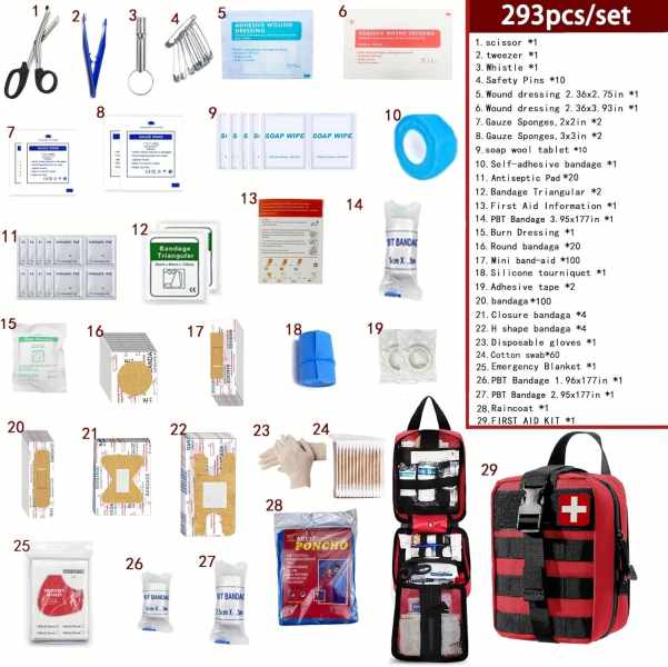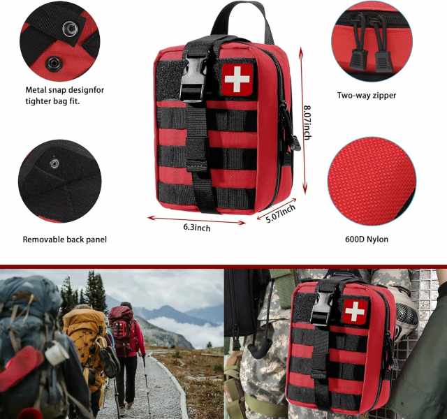 Taktyczna apteczka pierwszej pomocy MOLLE Survival do użytku w sytuacjach awaryjnych i na zewnątrz została zaprojektowana z myślą o turystach pieszych, wczasowiczach, zespołach ratowniczych i wszystkich osobach przygotowujących się na nieoczekiwane sytuacje awaryjne na świeżym powietrzu. Używanie trwałych, odpornych na warunki atmosferyczne materiałów i profesjonalnej jakości komponenty, tozestaw zapewnia niezbędne narzędzia do przetrwania, nawigacji, pierwszej pomocy i sygnalizacji awaryjnej.